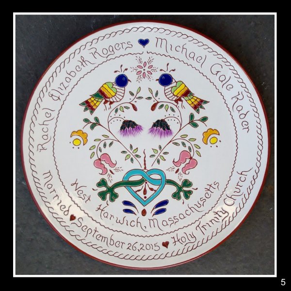 Celebrate weddings, births, anniversaries or any significant life event as well as home blessings and family trees with my Sgraffito Redware plates.